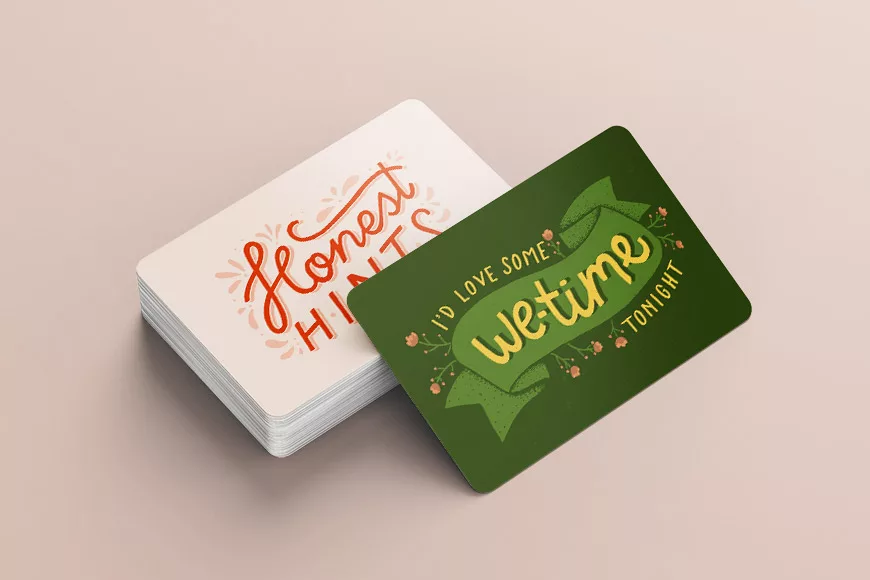 Honest hints er en kortstokk som du kan bruke til å gi partneren et «hint» om hva du tenker. Heng kortet på kjøleskapet. Legg det i kortmappa, eller øv deg på et stilig korttriks hvis du vil imponere 🙂