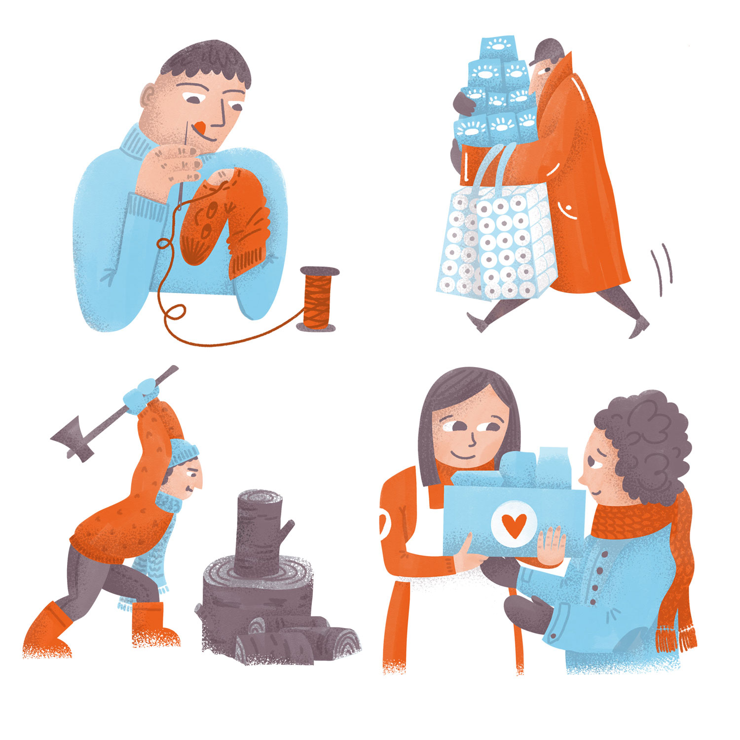 Tøffere tider er en serie med illustrasjoner som viser ting som er langt framme i folks bevissthet i dag.